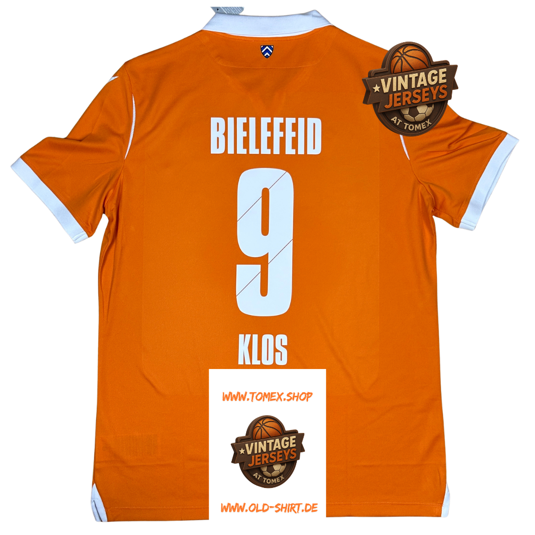 Das Trikot trägt den Namen Fabian Klos (#9) und stammt aus einer besonderen Phase der Vereinsgeschichte. In der Saison 2020/2021 spielte Arminia Bielefeld in der Bundesliga und kämpfte erfolgreich um den Klassenerhalt.